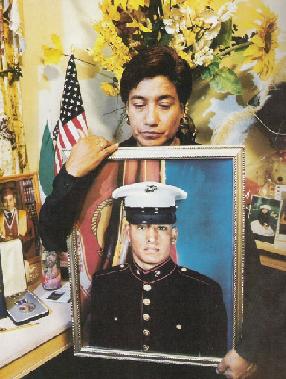 القائمة. في إطار صغير نرى صورته وهو في بدلة المارينز